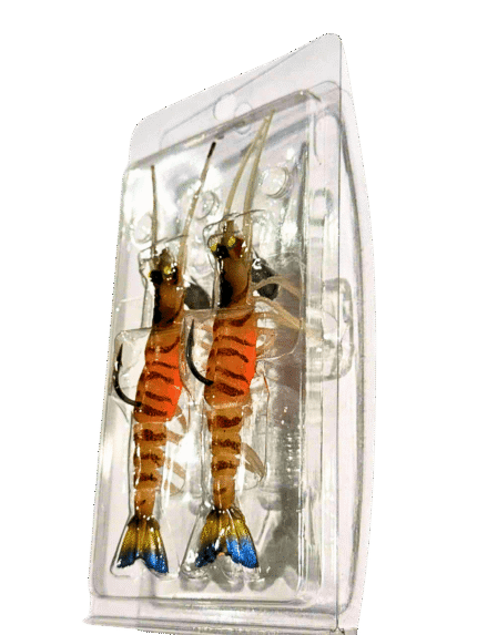 Mồi tôm mềm có kèm lưỡi câu – 1 vỉ gồm 2 con tôm.