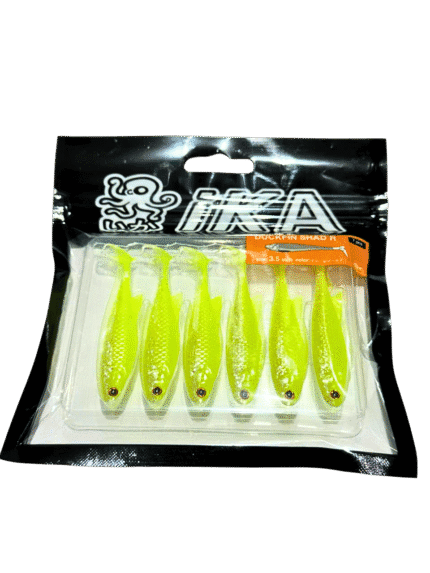 Mồi mềm IKA cá màu vàng neon phát sáng, không kèm lưỡi câu.