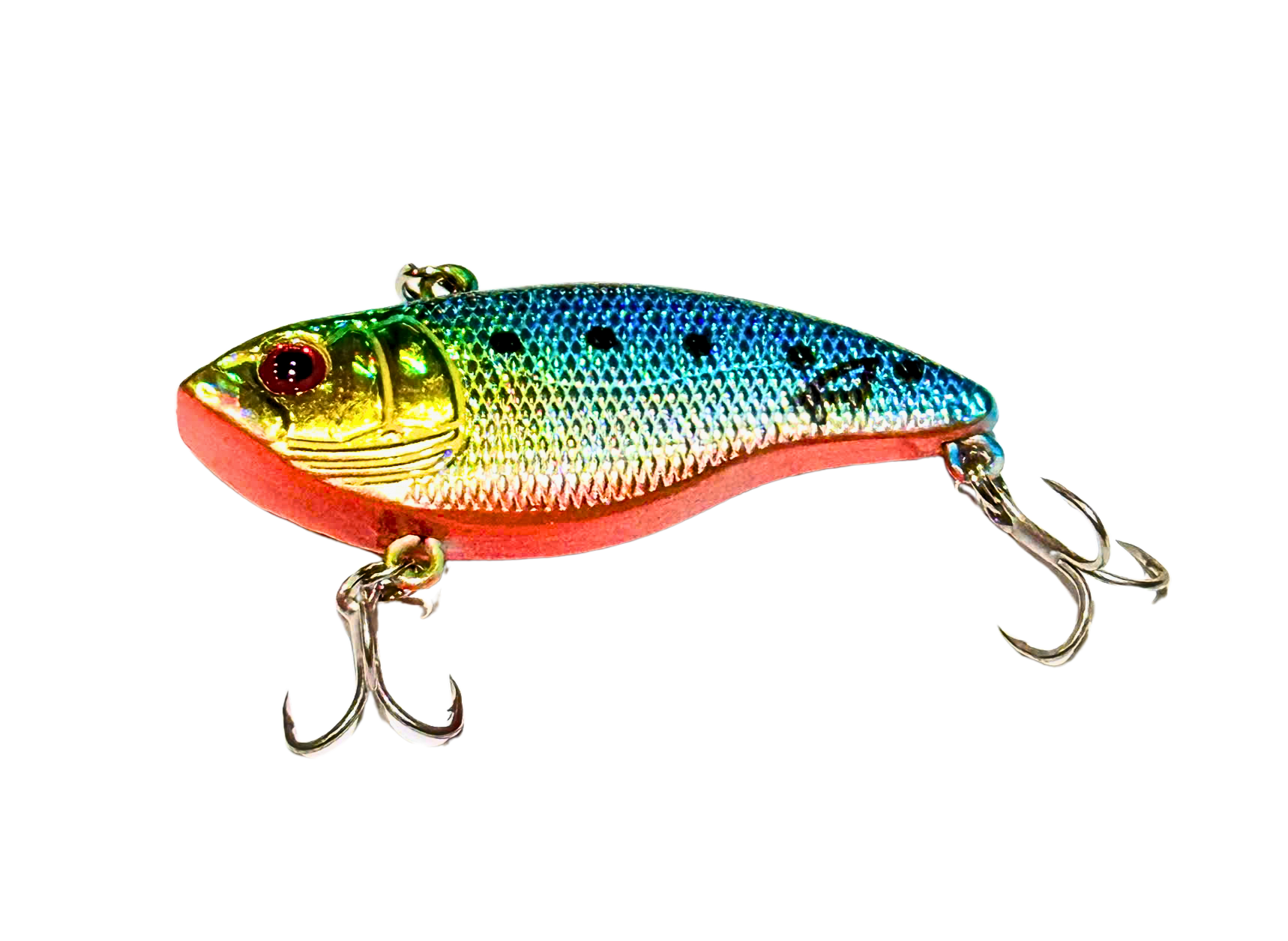Mồi Cá Giả Kèm Lưỡi Câu ASHINO LEVEL VIB là mẫu mồi rung (Vibration Lure) cao cấp, được thiết kế mô phỏng cá mồi tự nhiên với màu sắc chuyển sắc nổi bật. Phối màu xanh – bạc – vàng ánh kim, kết hợp hiệu ứng loang màu ở đầu và thân, tạo khả năng phản sáng mạnh, cực kỳ hiệu quả khi câu trong nước đục, nước tối hoặc ánh sáng yếu (sáng sớm – chiều muộn).
