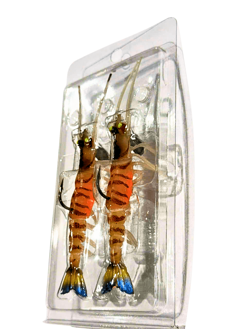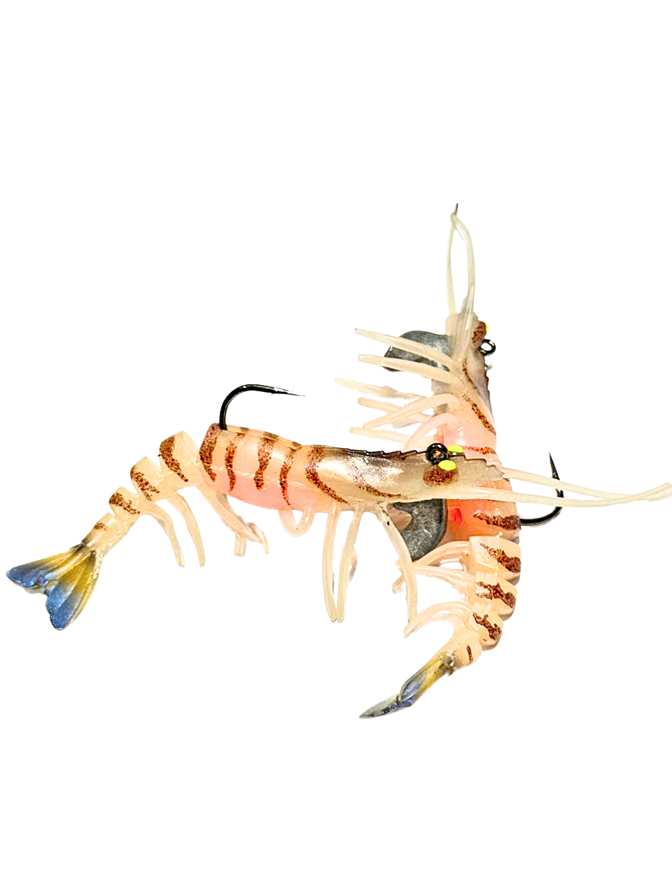 Thiết kế giả tôm thật: thân mềm, bụng ôm trứng nhiều càng nhỏ và chi tiết đuôi, mắt nổi bật tạo hiệu ứng quẫy – thu hút cá hiệu quả.