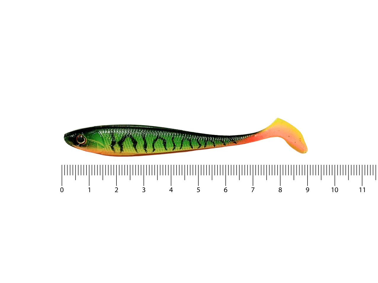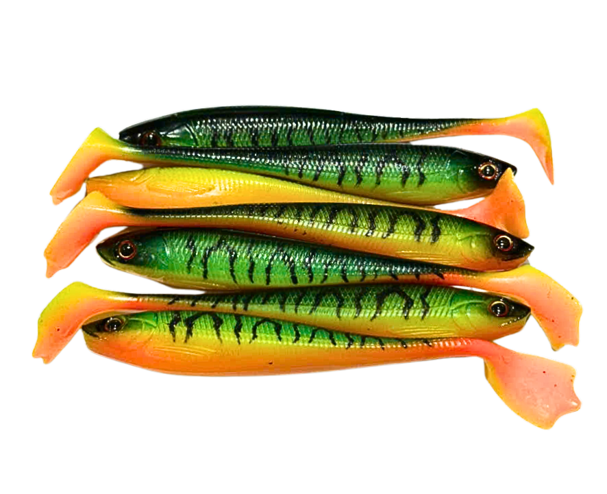 Mồi mềm IKA Cá sọc tông màu xanh – vàng – cam neon rực rỡ, không kèm lưỡi câu là dòng mồi cao cấp được thiết kế theo hình dáng cá mồi thật với màu sắc nổi bật cực kỳ kích thích.